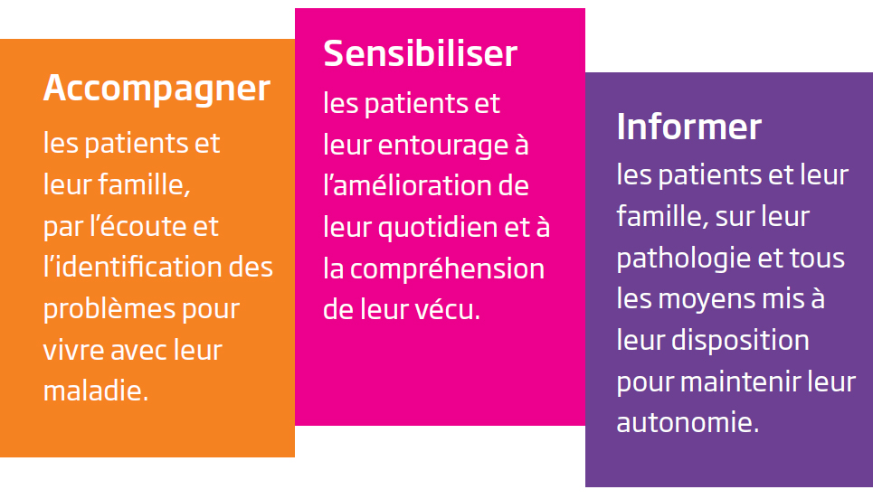 Ces 10 dernières années, même si l’information reste importante, c’est l’accompagnement qui caractérise notre association. La partie médicale est prise en charge par les professionnels de la santé et notre rôle est de compléter leur mission par une écoute, des témoignages, des encouragements et la mise en place de solution dans leur quotidien.
